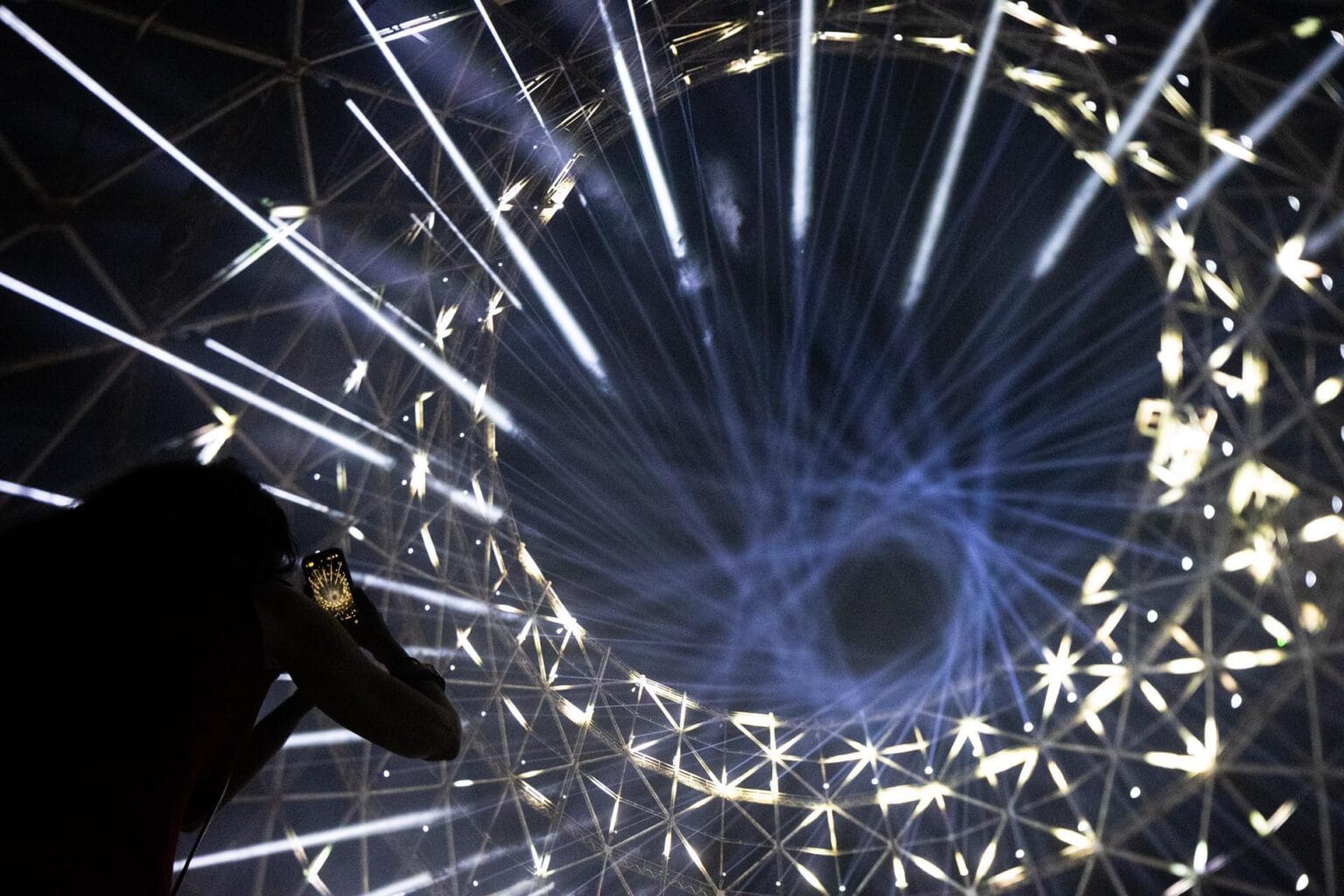 Durante cerca de 15 minutos, o público é envolvido por luzes em movimento, névoa e uma trilha sonora imersiva que transforma o espaço sob o viaduto em uma paisagem etérea e em constante transformação.