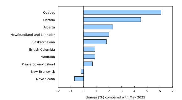 Em junho, o aumento nacional também ficou concentrado em Quebec e Ontário, que juntas responderam por 84,3% da alta de 18 mil pessoas. Houve ainda avanços menores em Alberta, com alta de 2,3% e 1.300 beneficiários a mais, em Newfoundland and Labrador, que subiu 2% com 600 novos beneficiários, e em Saskatchewan, que registrou elevação de 1,8% com 300 pessoas a mais.