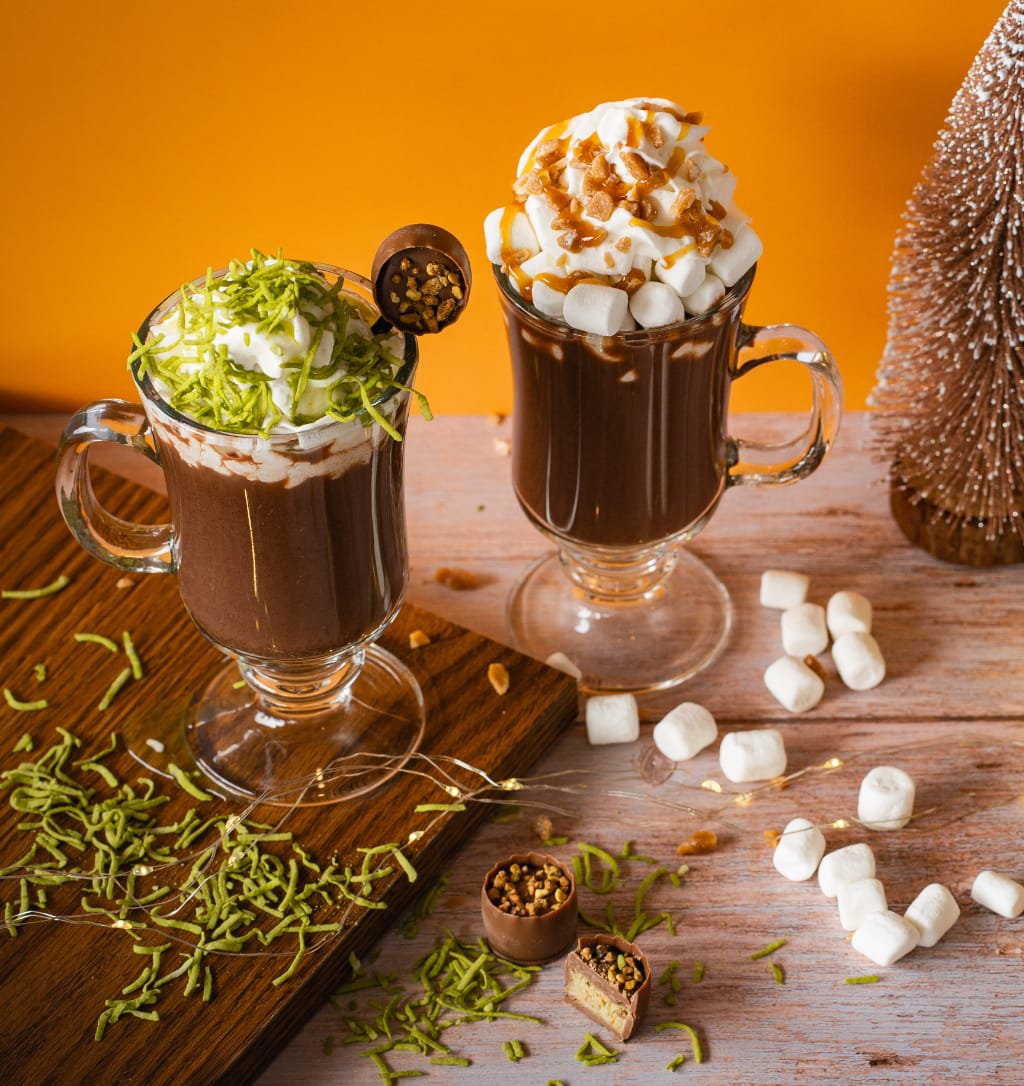 O Clifton Family Restaurant apresenta o Dubai Dessert Hot Chocolate, com calda de pistache, matcha e coco, além do Marshmallow Caramel Drizzle, finalizado com marshmallows e caramelo.
